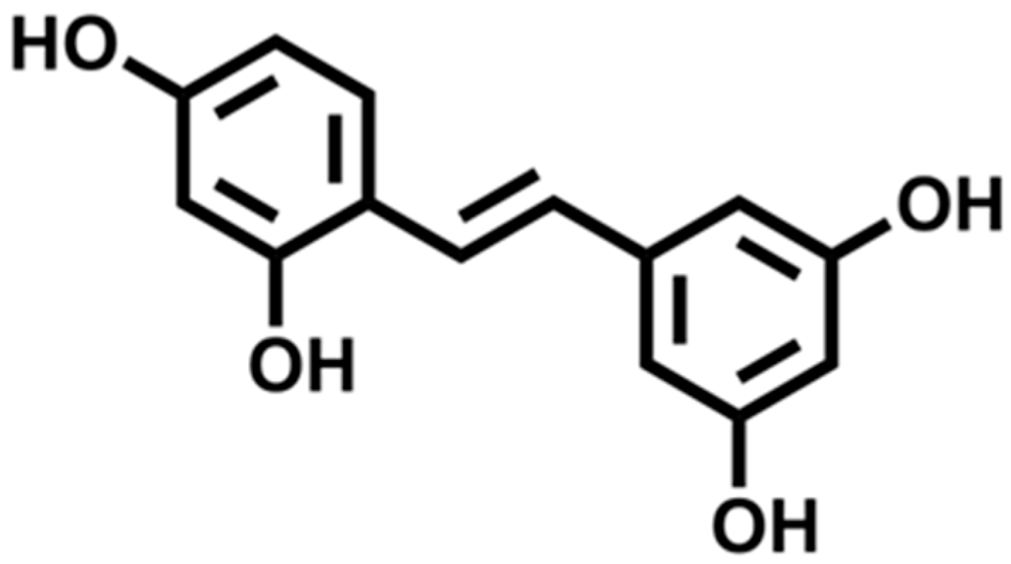 - Likhitwitayawuid, K. Oxyresveratrol: Sources, productions, biological activities, pharmacokinetics, and delivery systems. Molecules 2021, 26, 4212. [Google Scholar] [CrossRef] [PubMed]