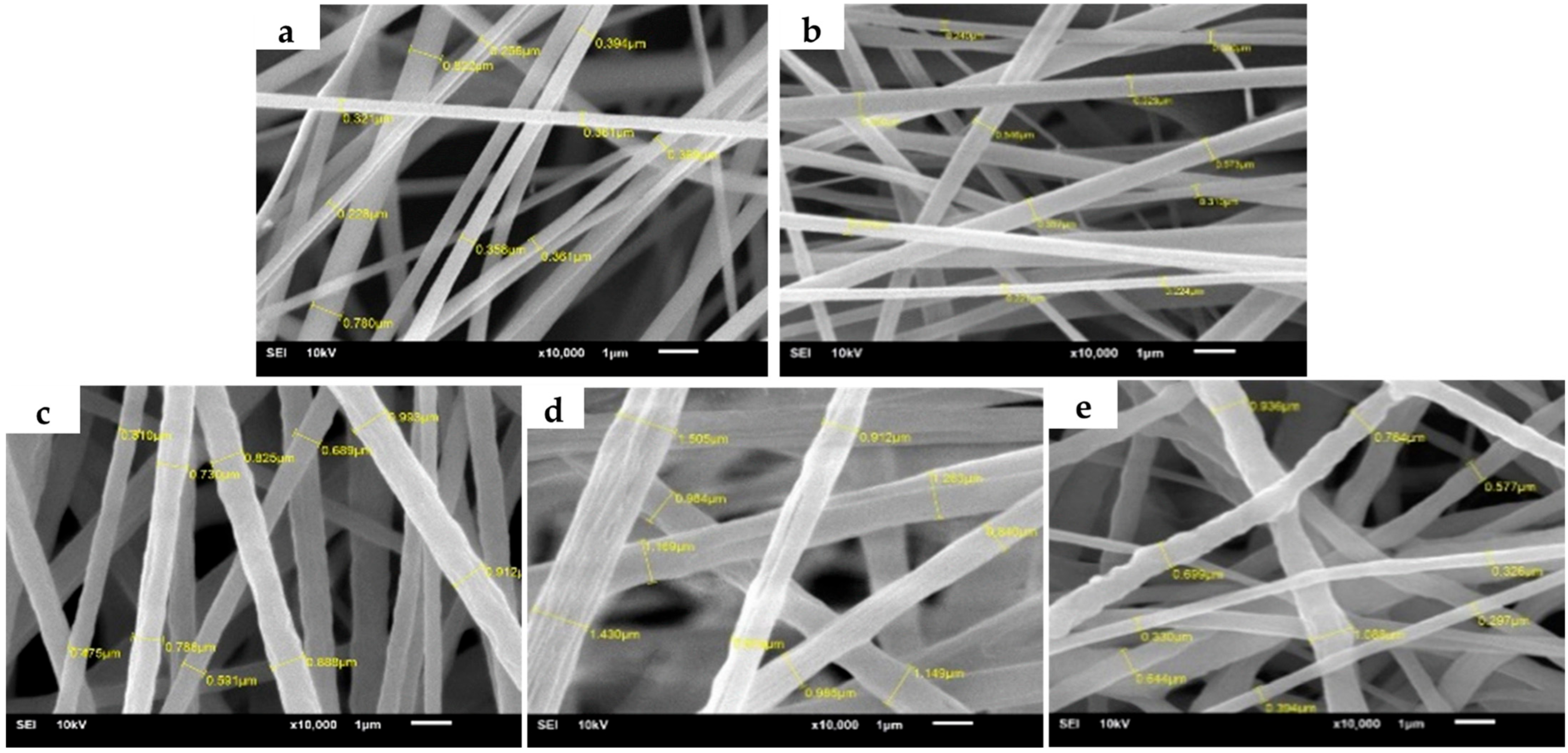- Lee, K.H.; Kim, H.Y.; Khil, M.S.; Ra, Y.M.; Lee, D.R. Characterization of nano-structured poly (ε-caprolactone) nonwoven mats via electrospinning. Polymer 2013, 44, 1287–1294. [Google Scholar] [CrossRef]
