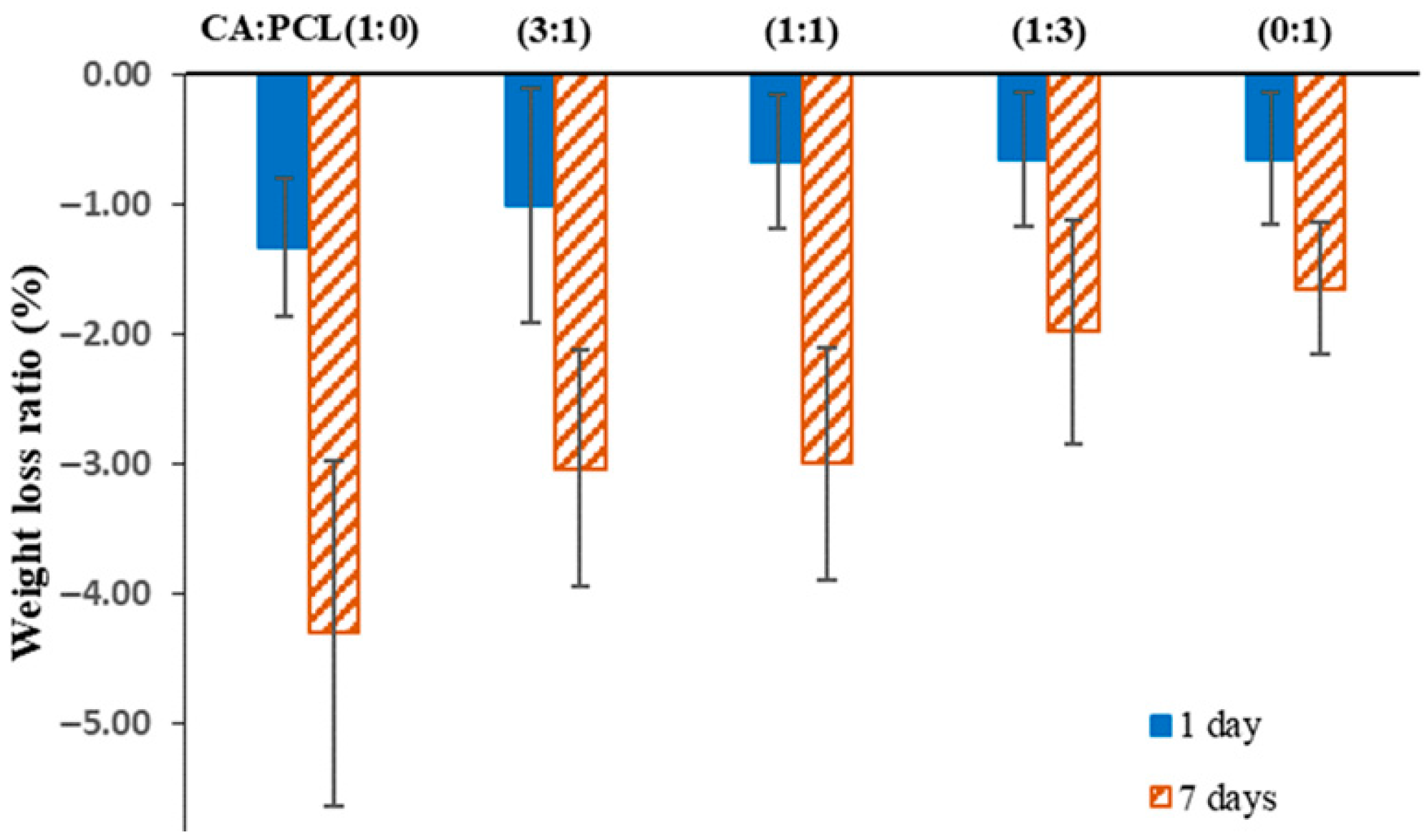 CA:PCL (1:0) | 80.53 ± 5.89 a |