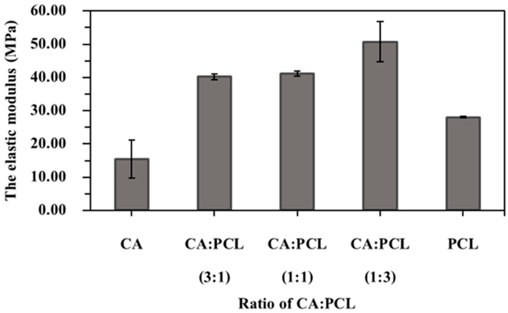2.11. Tensile Testing of trans-Oxyresveratrol-Loaded CA-PCL Fiber Sheets