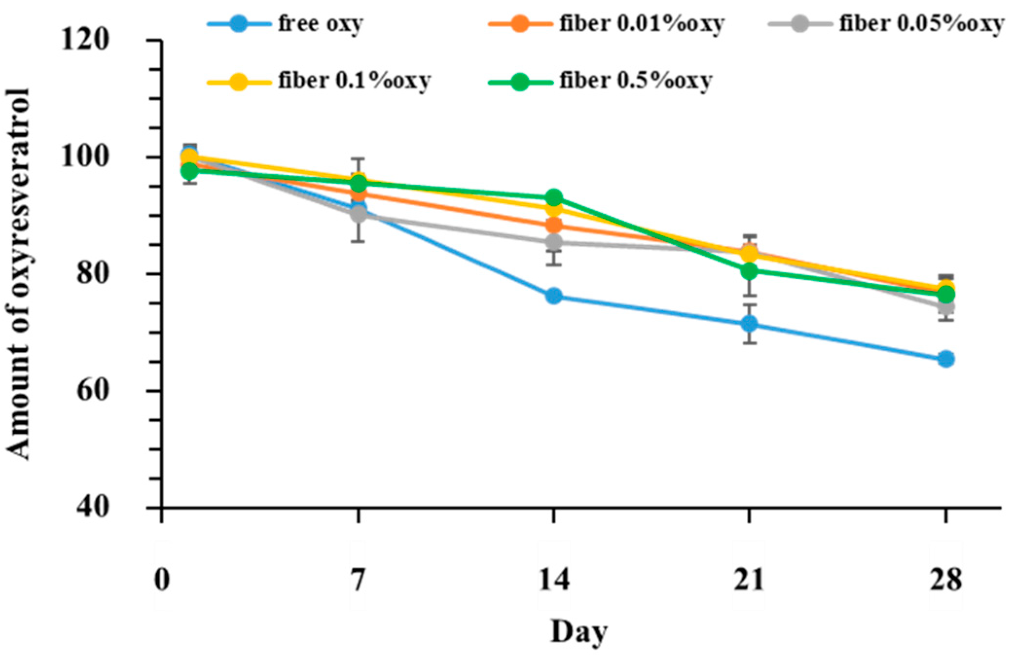 2.14. Stability of trans-Oxyresveratrol in trans-Oxyresveratrol-Loaded CA PCL Fiber Sheet