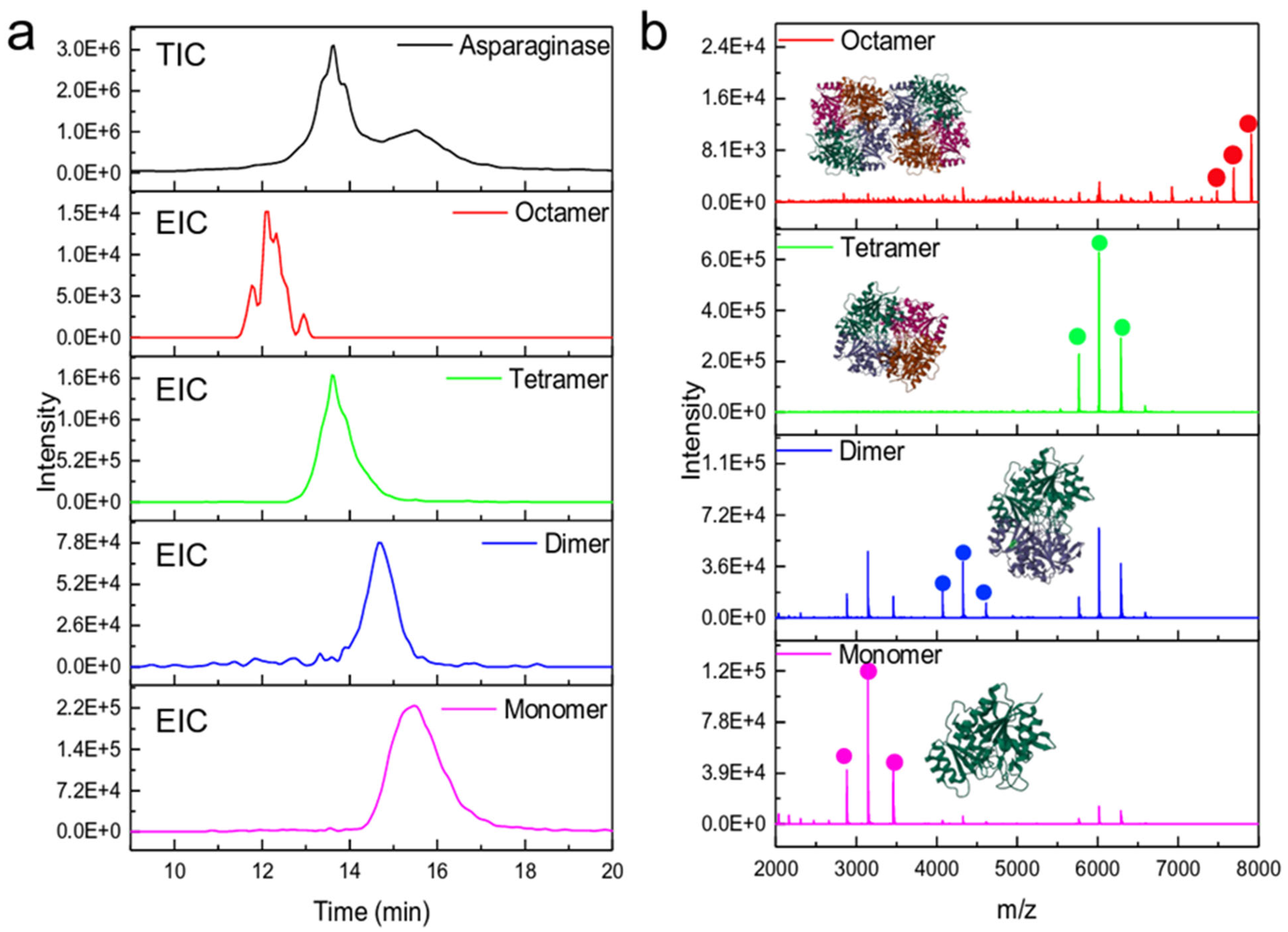 - Barth, M.; Schmidt, C. Native mass spectrometry—A valuable tool in structural biology. J. Mass Spectrom. 2020, 55, e4578. [Google Scholar] [CrossRef] [PubMed]