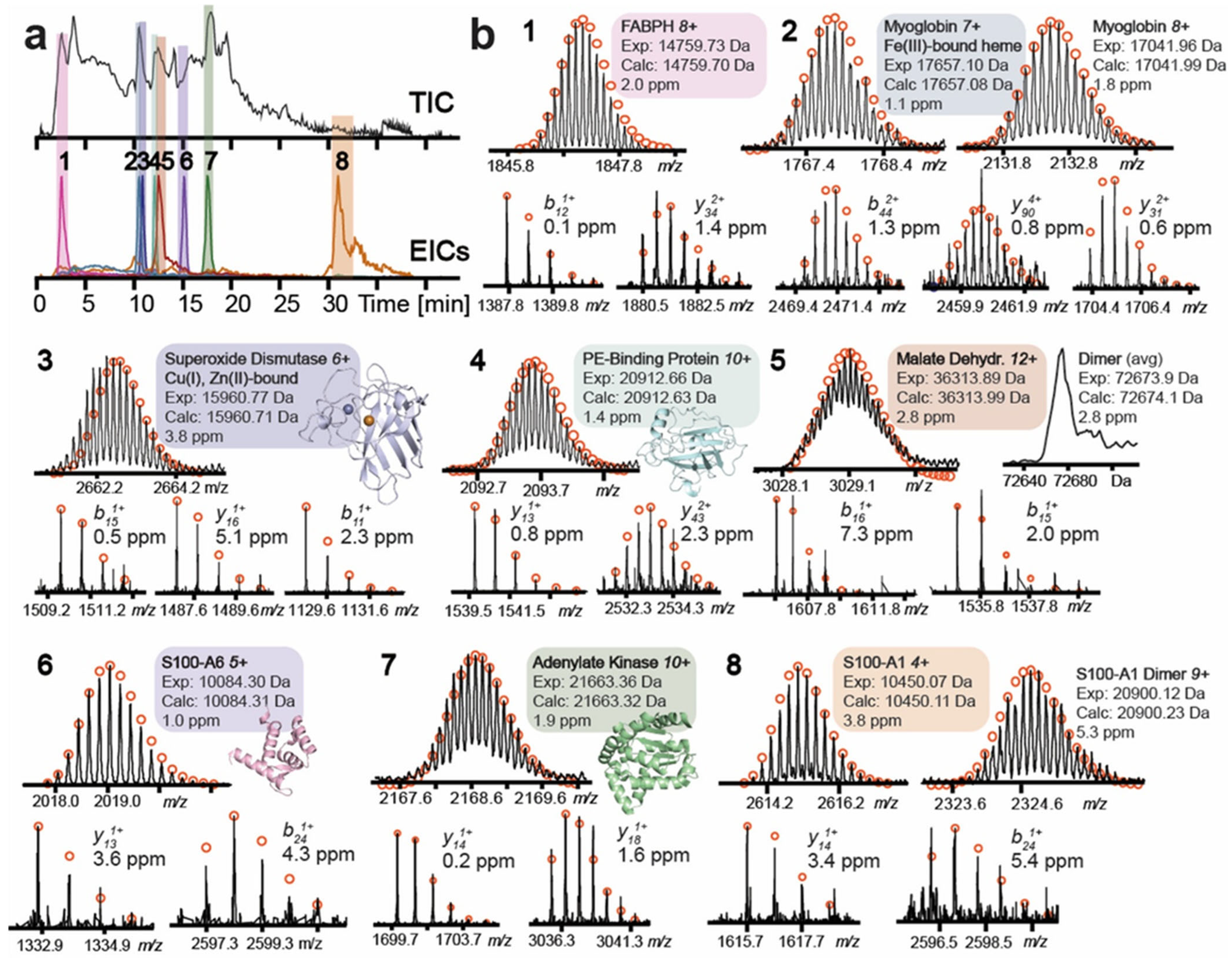 - Zhou, M.; Lantz, C.; Brown, K.A.; Ge, Y.; Paša-Tolić, L.; Loo, J.A.; Lermyte, F. Higher-order structural characterisation of native proteins and complexes by top-down mass spectrometry. Chem. Sci. 2020, 11, 12918–12936. [Google Scholar] [CrossRef]
