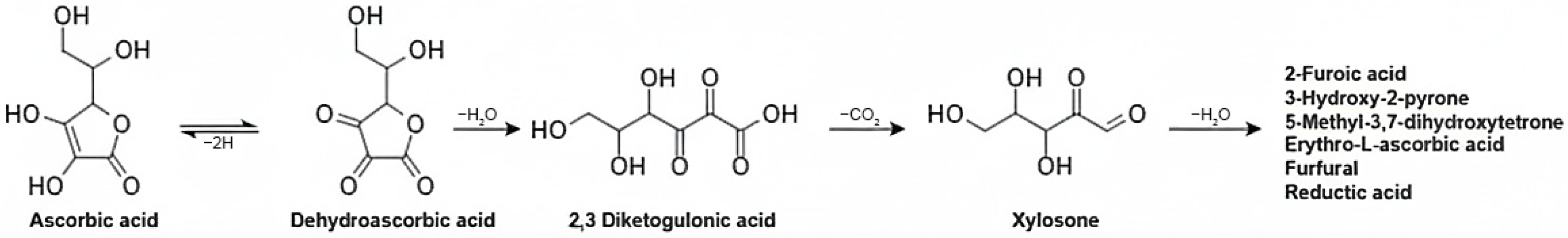 3.3. Aerobic and Anaerobic Degradation of Ascorbic Acid