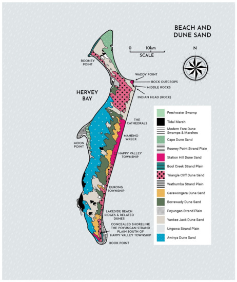 Figure 4. Extent of different types of dune systems on K’gari modified from [42].