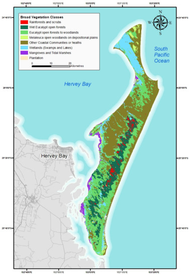 Figure 6. K’gari’s vegetation regional ecosystems (qldglobe.information.qld.gov.au).
