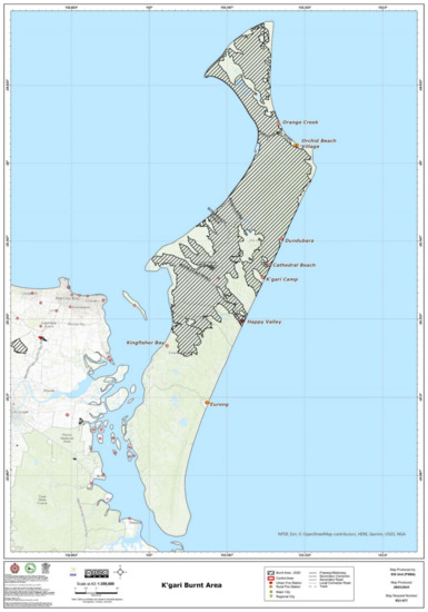Figure 8. K’gari burnt area, October–December 2020 [71].