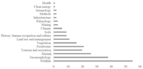 Figure 14. Frequency of research subjects in the publications related to Fraser Island. Note: Multiple categories were possible.