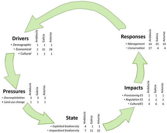 3.3. Results of the DPSIR Analysis for Galicia and Asturias