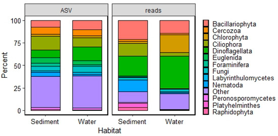 - Forster, D.; Dunthorn, M.; Mahé, F.; Dolan, J.R.; Audic, S.; Bass, D.; Bittner, L.; Boutte, C.; Christen, R.; Claverie, J.-M.; et al. Benthic protists: The under-charted majority. FEMS Microbiol. Ecol. 2016, 92, fiw120. [Google Scholar] [CrossRef]