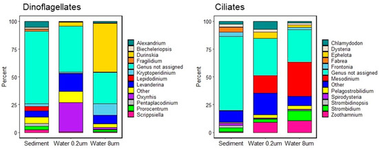 - Stoeck, T.; Kochems, R.; Forster, D.; Lejzerowicz, F.; Pawlowski, J. Metabarcoding of benthic ciliate communities shows high potential for environmental monitoring in salmon aquaculture. Ecol. Indic. 2018, 85, 153–164. [Google Scholar] [CrossRef]