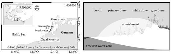 - Dunes of the Baltic Sea Coast, Botanical Garden, University of Rostock. Adapted with Permission from Dethardt Götze. 2024, Sarah Mamerow. Available online: https://www.garten.uni-rostock.de/studium-und-lehre/vertiefung-ausgewaehlter-themen/duenen-der-ostseekueste/ (accessed on 3 June 2024).