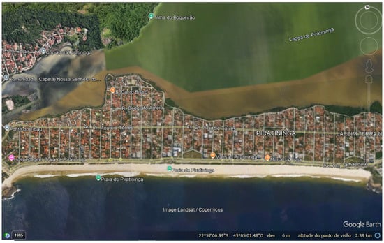 Satellite image of Piratininga beach, Niterói, Brazil, showing urban settlements built on the sand formation. SOURCE: Google Earth.