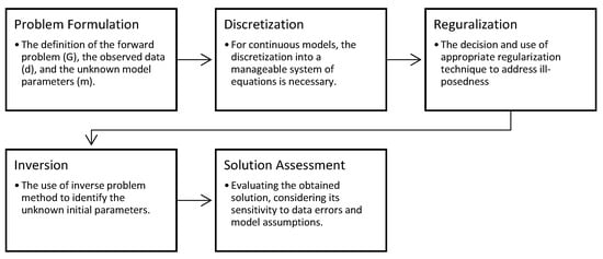 A flowchart outlining the key stages involved in solving an inverse problem.