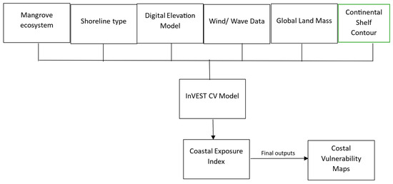 Flowchart on the inputs and outputs of the InVEST CV model.