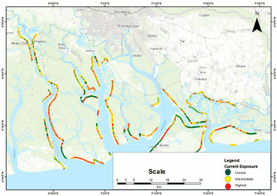 To determine how mangroves reduce a community’s vulnerability to floods, exposure under current and without mangrove scenarios were compared. In contrast to the existing situation, the whole coastline would be highly exposed without mangroves; 92% of it would be vulnerable to coastal flooding, and only 1% would be at minimal risk (Figure 5). Most of the communities are classified as being at high risk of floods.