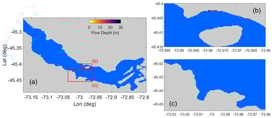 Table 2 shows that the computational domain extends over an area of 41.4 km by 25.2 km, encompassing the study region (see