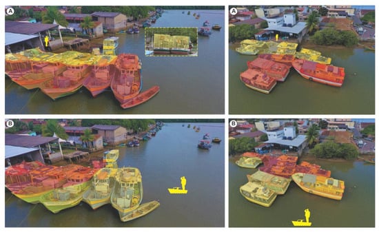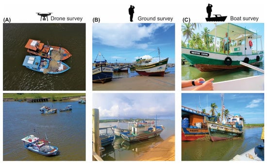 Research on fishery fleets yields information on the possible effort and can be used to identify potential fishing pressure on stocks, especially in small-scale coastal fisheries, which is stronger in the study area [,]. Quantifying the number of fishing vessels is important to achieve sustainable fisheries management as fishing can substantially impact certain coastal resources [,]. Based on the present study, a substantial amount of vessels would be largely underestimated, when the ground- or boat-based survey is employed to assess fishing fleet. Conversely, drone surveys reveal significantly more fleet capacity than previously known, and as fishing is an integral part of the economy and the society of many coastal communities, especially in Brazil [], inaccurate fishing vessel identification and the lack of official catch reporting [] hinder any attempt of designing and implementing realistic and effective management plans [].