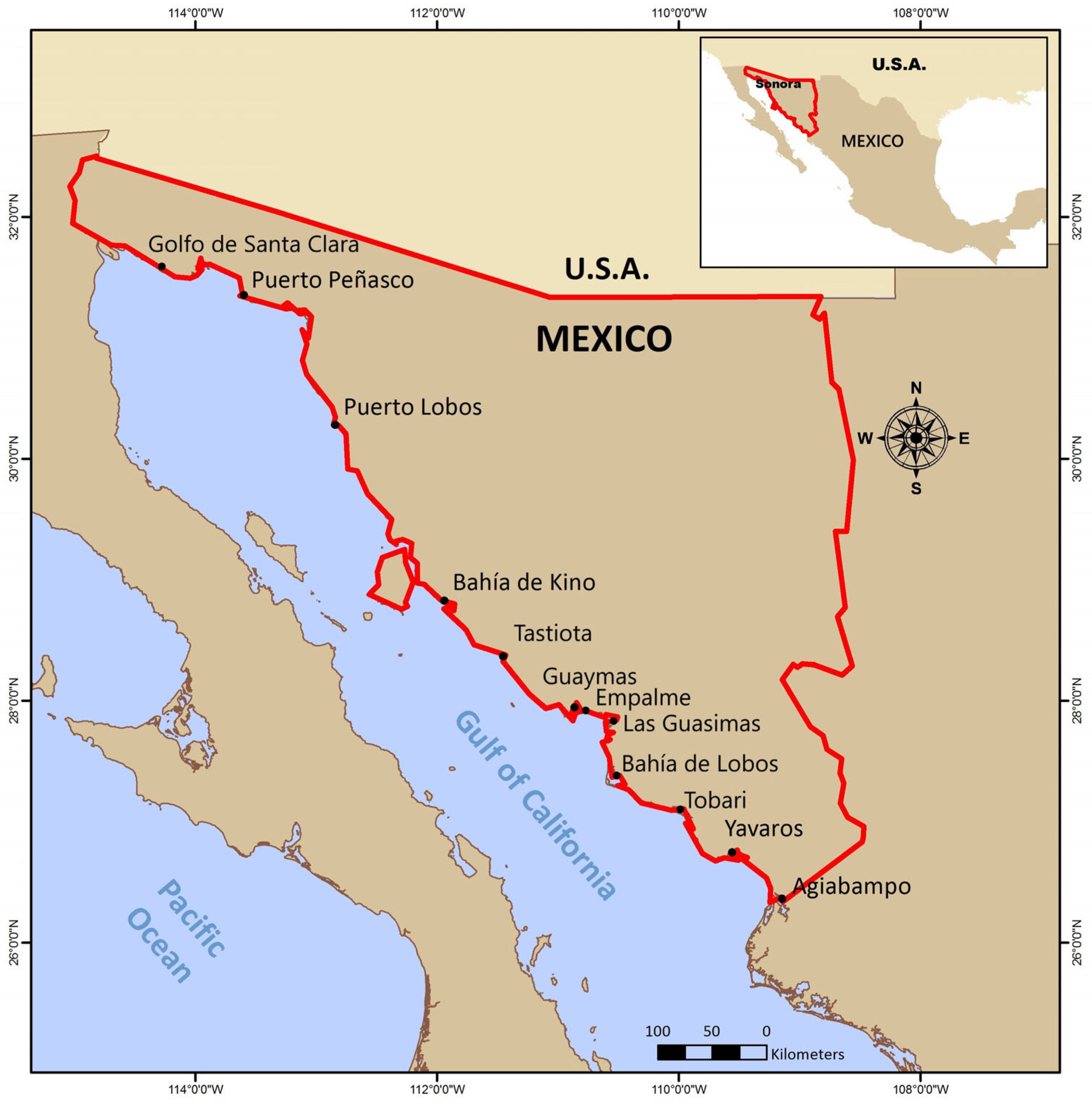 - BOGES. Boletín Oficial del Gobierno del Estado de Sonora. Decreto del Programa de Ordenamiento Ecológico Territorial del Estado de Sonora (Decree of the Program Land Spatial Planning of the Coastal Sonora). 2015. Available online: https://boletinoficial.sonora.gob.mx/boletin/images/boletinesPdf/2015/mayo/2015CXCV41III.pdf (accessed on 30 May 2025).