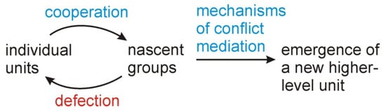 2]. Remarkably, throughout this history, higher-level units (e.g., eukaryotic cells and multicellular organisms) emerged by the banding together of lower-level units (e.g., prokaryotic and eukaryotic cells) [