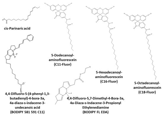 - Hedley, D.; Chow, S. Flow cytometric measurement of lipid peroxidation in vital cells using parinaric acid. Cytometry 1992, 13, 686–692. [Google Scholar] [CrossRef]