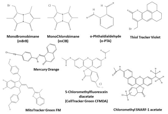 - Skindersoe, M.E.; Kjaerulff, S. Comparison of three thiol probes for determination of apoptosis-related changes in cellular redox status. Cytom. Part A 2014, 85, 179–187. [Google Scholar] [CrossRef]
