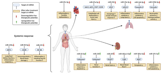 Data revisions was performed by multiple reviewers who independently extracted data from each eligible article focused on miRNA interventions in sepsis animal models. A summary of miRNAs targeting genes and pathways, as well as an experimental model and the beneficial effect on the targeted organ, is presented in this scoping review. If there were any data on the regulation of oxidative stress pathways, we also included them in this study.