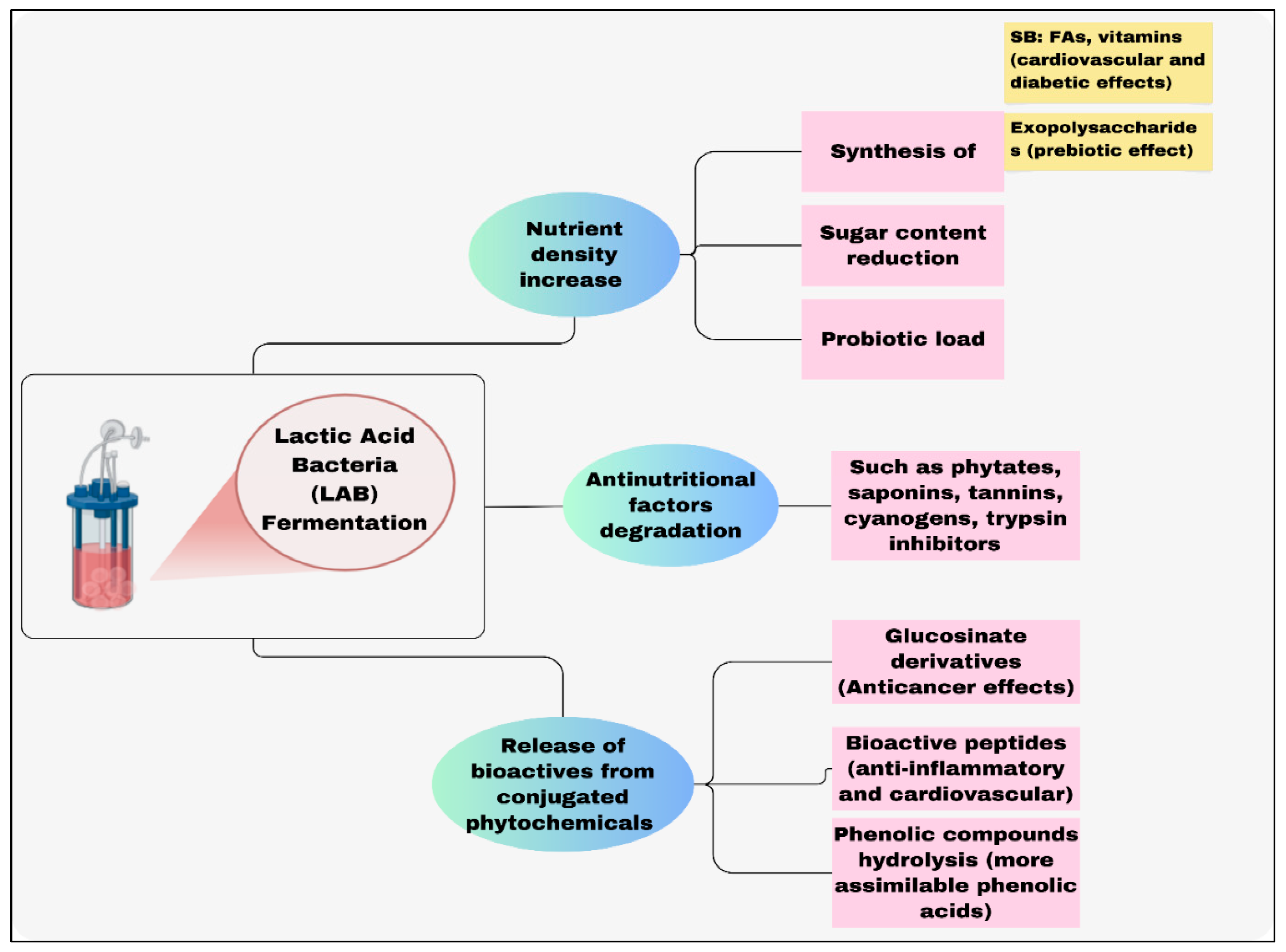 2.1. Role of Lactic Acid Bacteria (LAB) in Metabolizing Different Vital Compounds