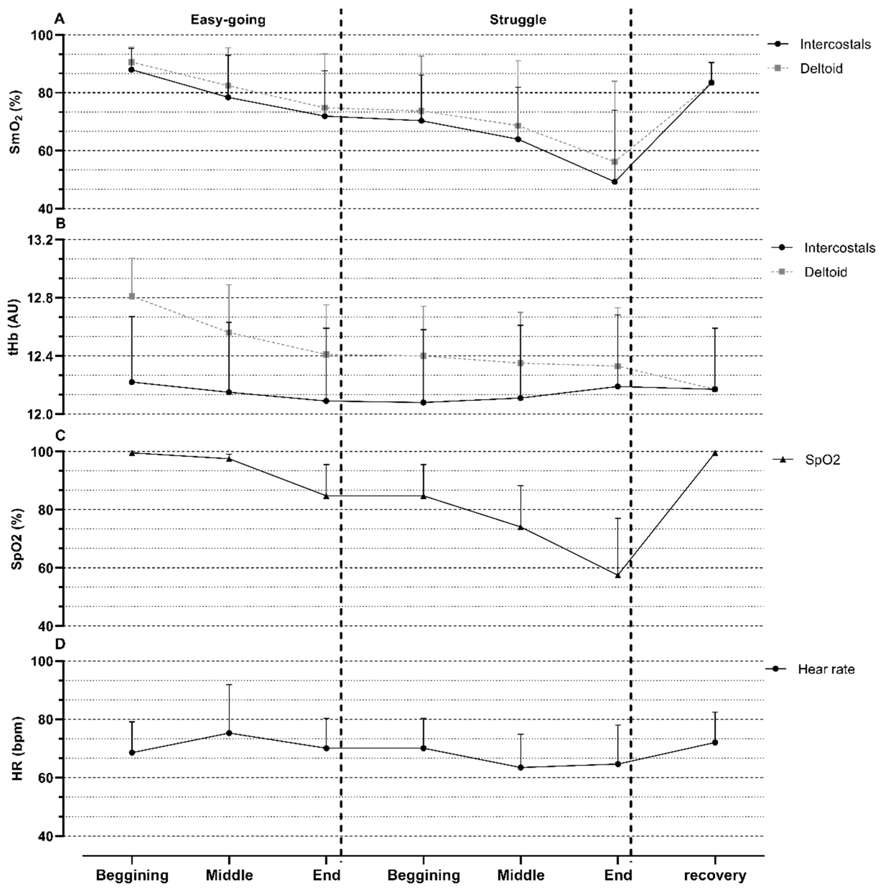 4.3. Peripheral and Local Muscle Oxygen Saturation