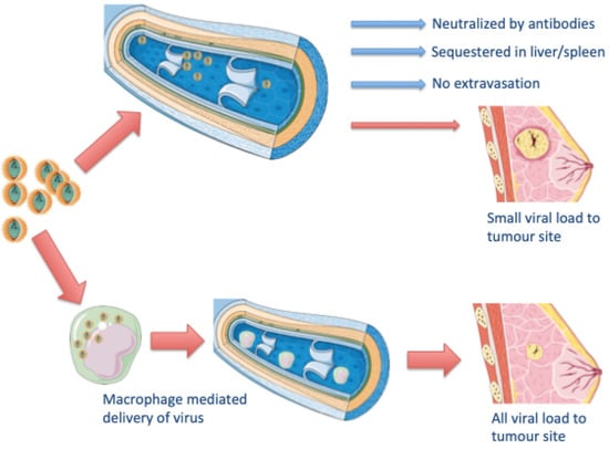 17. Willmon, C.; Harrington, K.; Kottke, T.; Prestwich, R.; Melcher, A.; Vile, R. Cell Carriers for Oncolytic Viruses: Fed Ex for Cancer Therapy. Mol. Ther. 2009, 17, 1667–1676. [Google Scholar] [CrossRef]