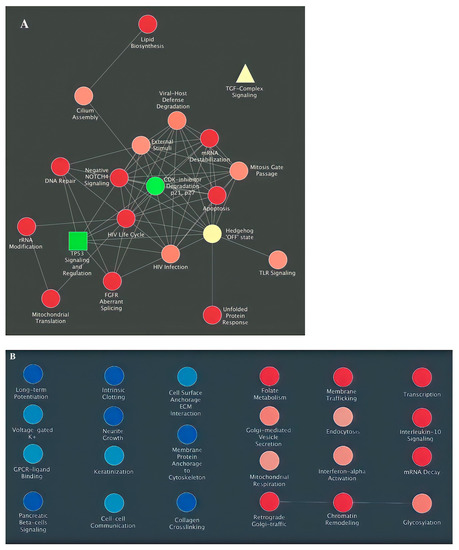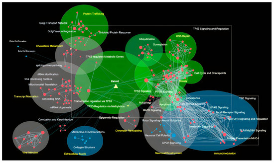- Merico, D.; Isserlin, R.; Stueker, O.; Emili, A.; Bader, G.D. Enrichment Map: A Network-Based Method for Gene-Set Enrichment Visualization and Interpretation. PLoS ONE 2010, 5, e13984. [Google Scholar] [CrossRef]