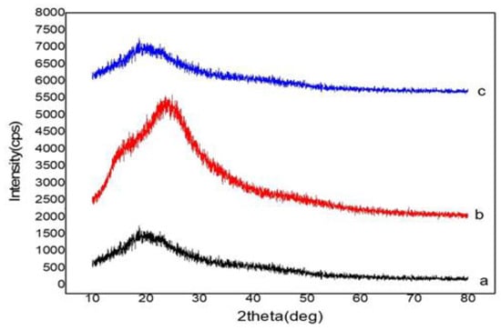 XRD spectra of (a) GTE, (b) Soluplus®, and (c) GTE-SD.
