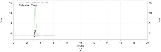 The HPLC chromatogram showing the peak of (a) pure ECGC; (b) GTE extract; (c) GTE-SD.