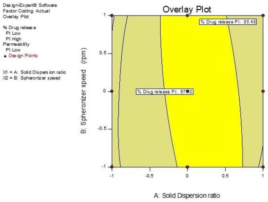 Overlay plot indicating the optimized conditions for the formulation of GTE-SD pellets.