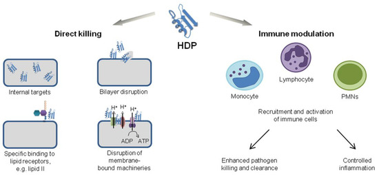 AMPs can act directly by killing microbes and/or by modulating immune responses. Reproduced from Ulm and co-workers [103].
