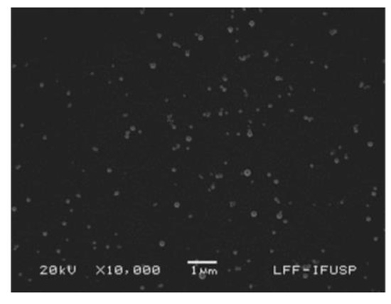 Scanning electron micrograph of gramicidin (Gr) dispersions at 0.05 mM Gr in pure water and the effect of gramicidin (Gr) concentration on the physical properties of Gr dispersions in water and 1% trifluoroethanol. Measurements were performed 30 min after preparation of the Gr dispersions. Physical properties of the dispersions were the macroscopic aspect seen in photos, the mean z–average diameter (Dz), the zeta–potential (ζ), and the polydispersity (P). All measurements represent a mean value ± the mean standard deviation. Reproduced from [21].
