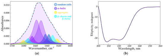 - Dong, A.; Meyer, J.D.; Brown, J.L.; Manning, M.C.; Carpenter, J.F. Comparative fourier transform infrared and circular dichroism spectroscopic analysis of α1-proteinase inhibitor and ovalbumin in aqueous solution. Arch. Biochem. Biophys. 2000, 383, 148–155. [Google Scholar] [CrossRef] [PubMed]