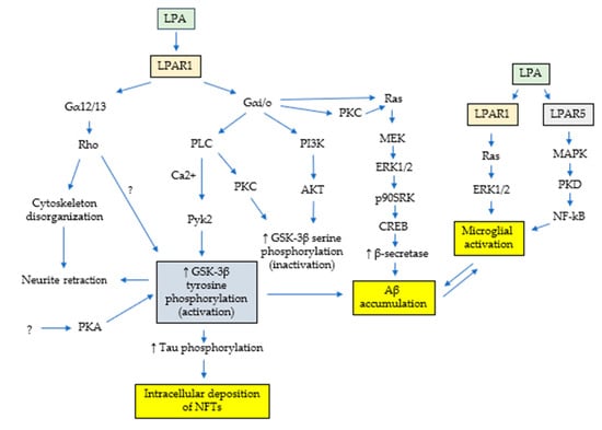 Schematic representation of the LPA signaling cascades involved in the pathogenesis of Alzheimer’s disease.