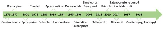 The graphical representation of timeline of introduction of IOP-lowering drugs.
