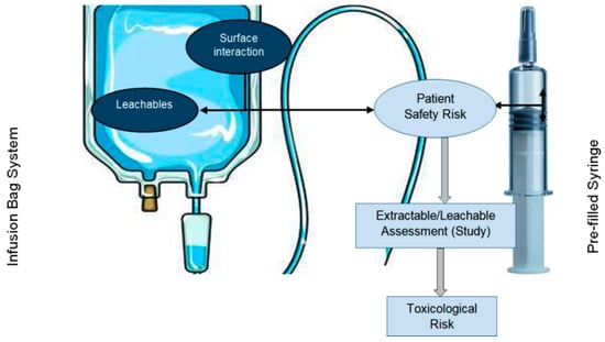 The safety risk assessment of identified leachables from packaging systems, delivery systems, or manufacturing-process-related equipment is a complicated procedure [15]. The number of detected and labeled leachables can be large (e.g., more than 20). It is important to note that a lack of comprehensive data on chronic exposure to many leachables may necessitate the use of conservative assumptions or extrapolation methods to estimate potential risks. Additionally, ongoing research and monitoring of leachables in pharmaceutical products can help to fill gaps in the knowledge and improve the safety of these products.