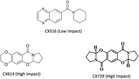 Ampakines used in this study. CX516 is a low-impact ampakine, while CX614 and CX729 are high-impact ampakines.