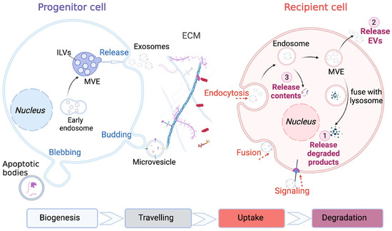 - Liu, Y.J.; Wang, C. A Review of the Regulatory Mechanisms of Extracellular Vesicles-Mediated Intercellular Communication. Cell Commun. Signal. 2023, 21, 77. [Google Scholar] [CrossRef]