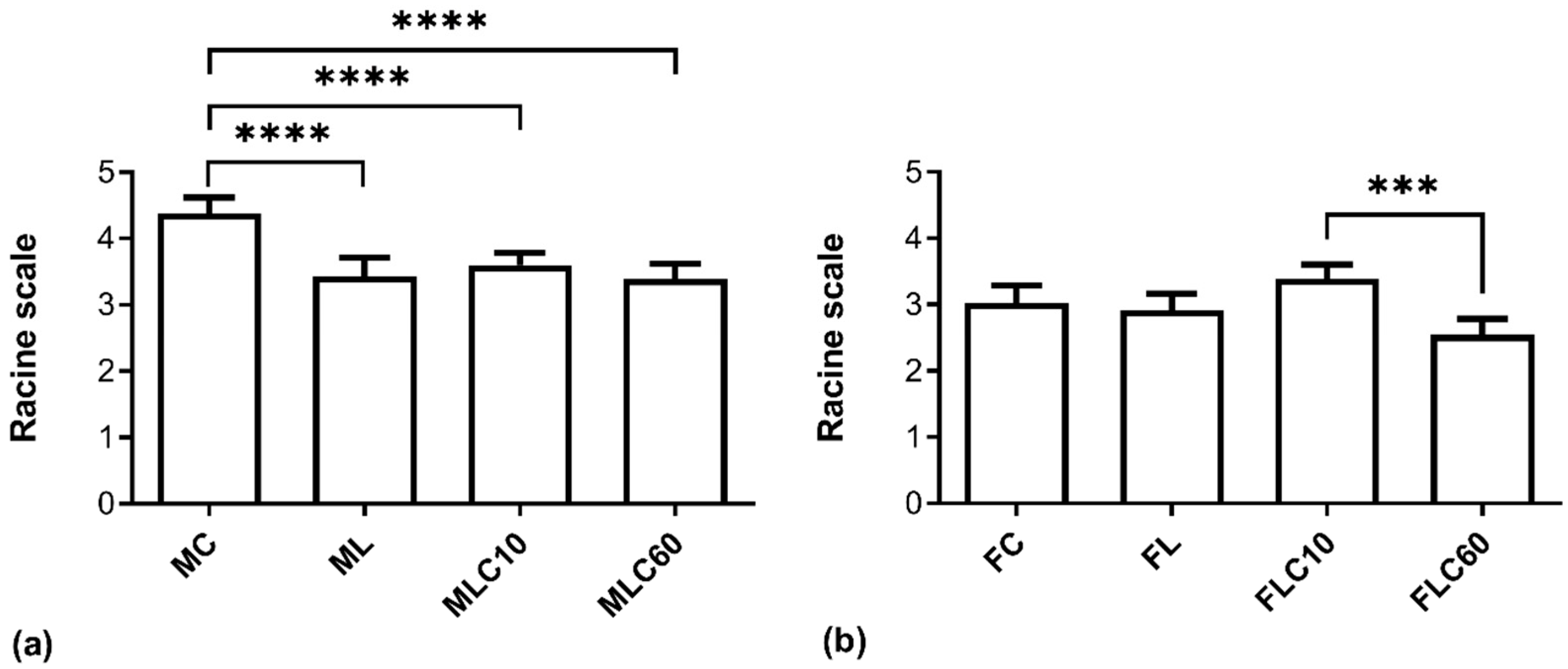| FL and ML | i.p.—300 mg/kg body weight LEV solution for infusion | p.o.—300 mg/kg body weight LEV tablet |