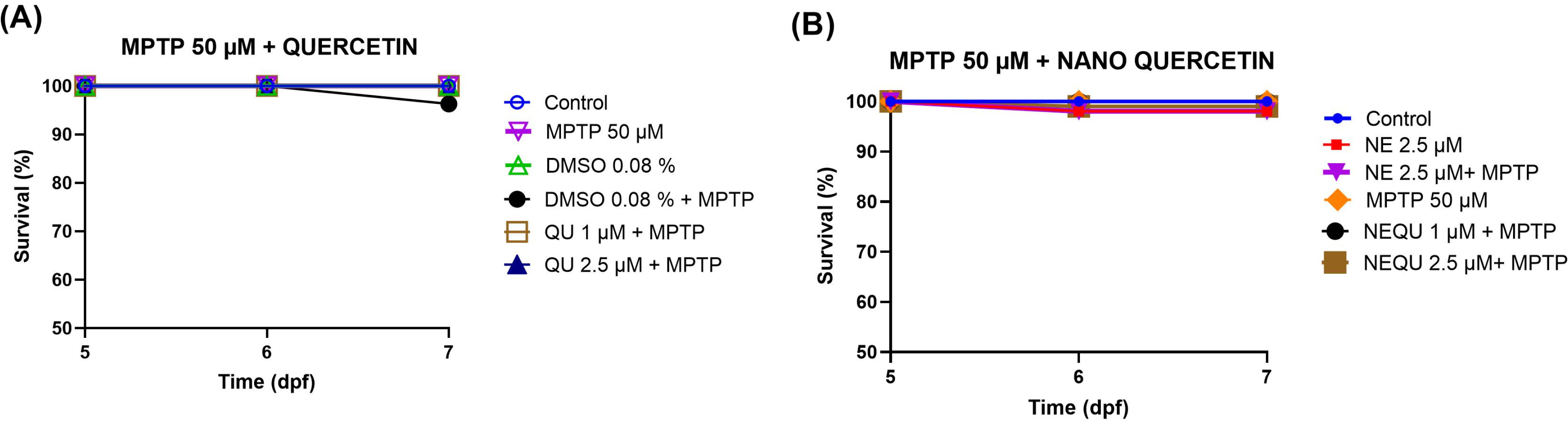 - Zhang, J.-L.; Souders, C.L.; Denslow, N.D.; Martyniuk, C.J. Quercetin, a Natural Product Supplement, Impairs Mitochondrial Bioenergetics and Locomotor Behavior in Larval Zebrafish (Danio Rerio). Toxicol. Appl. Pharmacol. 2017, 327, 30–38. [Google Scholar] [CrossRef]