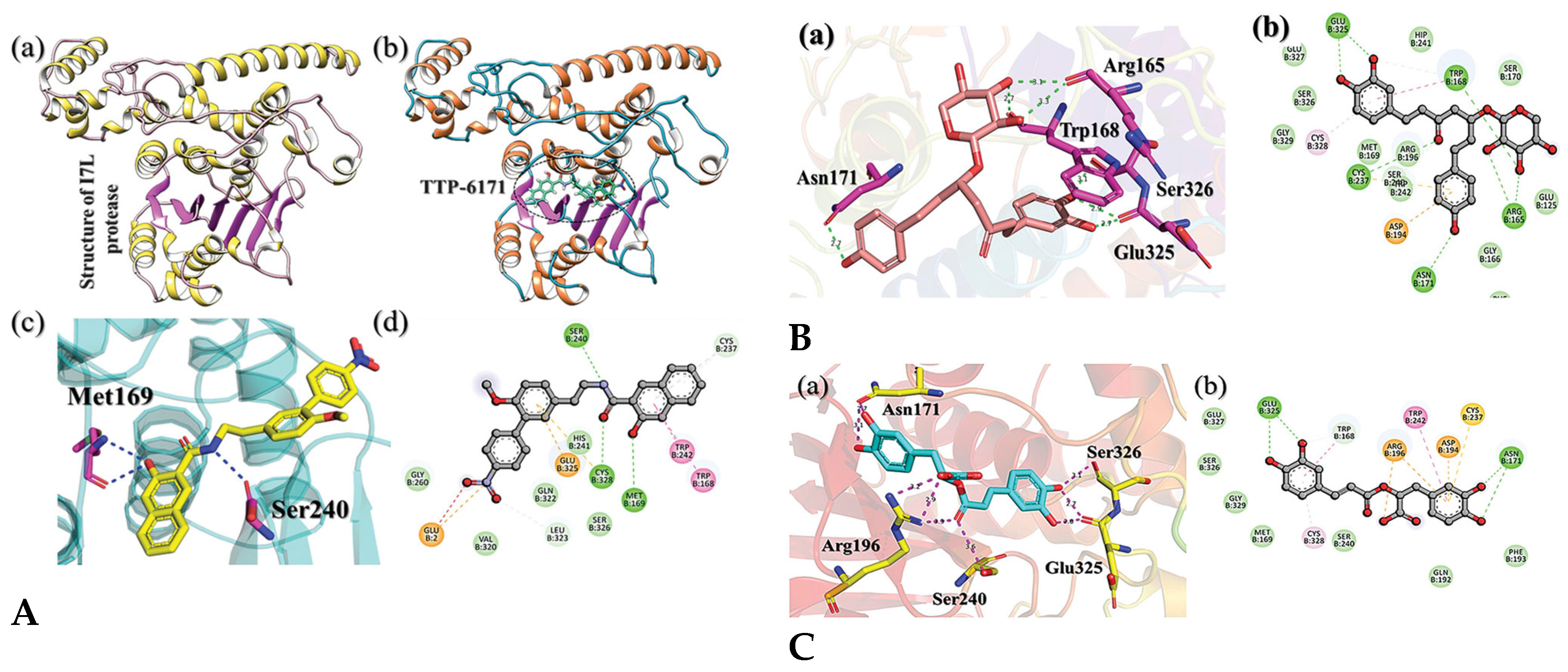 Caffeic Acid![]() | Various plant sources | Various viral proteins | Antiviral activity against poxviruses | Anti-inflammatory, Antioxidant, Cancer Treatment Adjuvant, | Inhibits viral replication through multiple mechanisms | [37] |