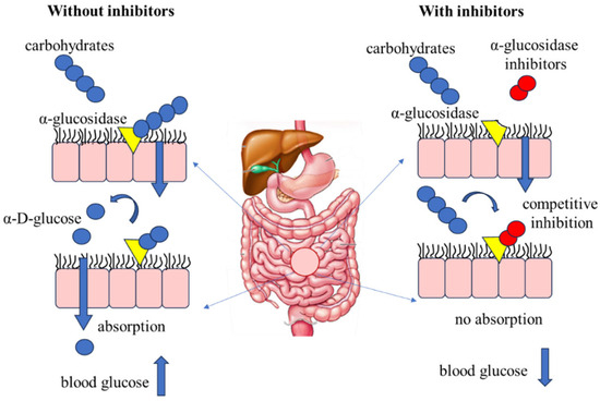 - Agrawal, N.; Sharma, M.; Singh, S.; Goyal, A. Recent Advances of α-Glucosidase Inhibitors: A Comprehensive Review. Curr. Top. Med. Chem. 2022, 22, 2069–2086. [Google Scholar] [CrossRef]