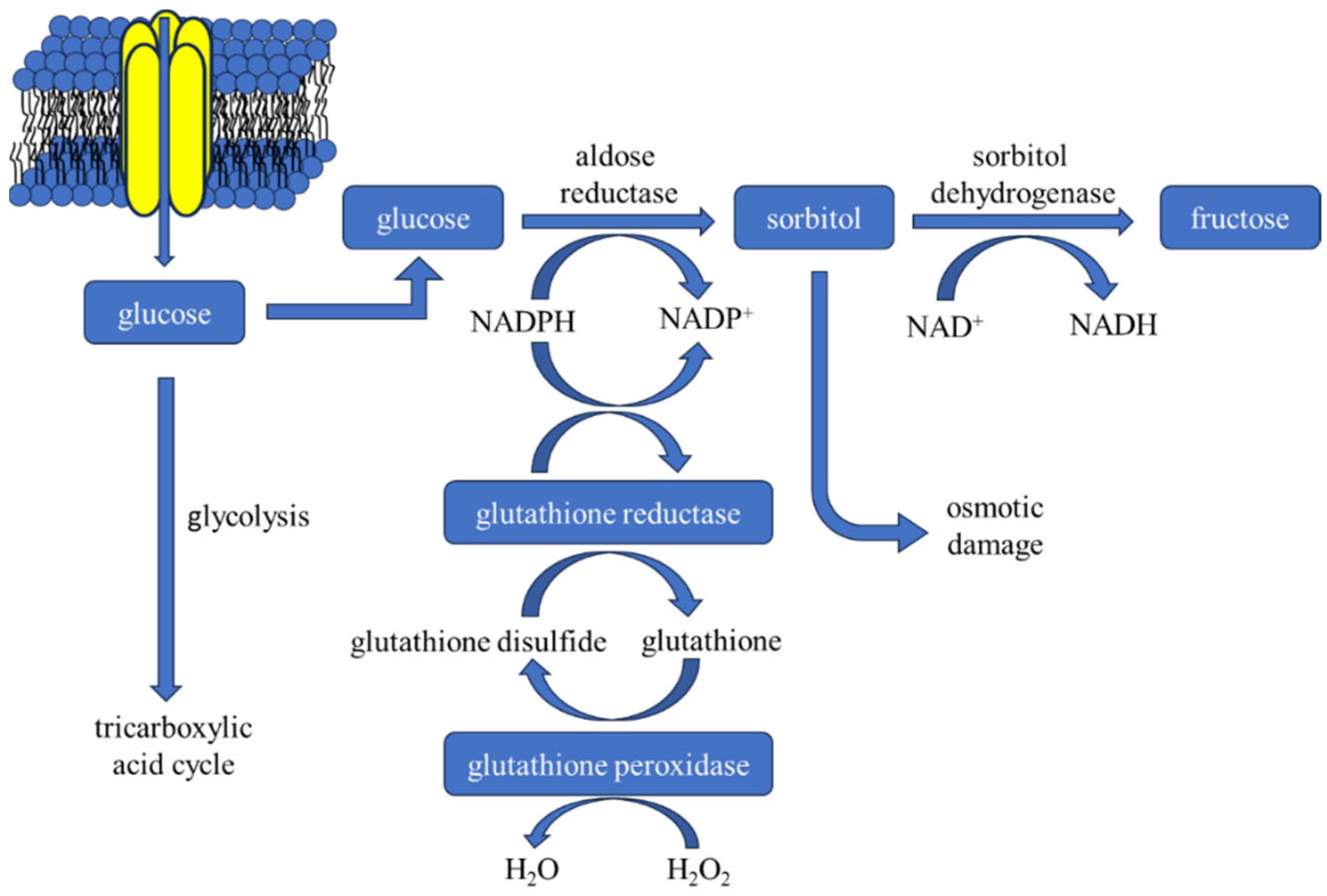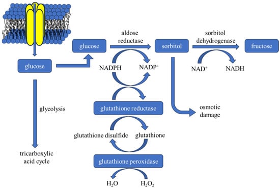 - Singh, M.; Kapoor, A.; Bhatnagar, A. Physiological and Pathological Roles of Aldose Reductase. Metabolites 2021, 11, 655. [Google Scholar] [CrossRef]