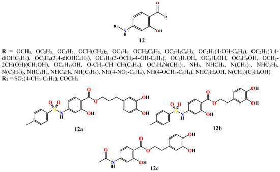 - Chen, J.; Lu, W.; Chen, H.; Bian, X.; Yang, G. A New Series of Salicylic Acid Derivatives as Non-Saccharide α-Glucosidase Inhibitors and Antioxidants. Biol. Pharm. Bull. 2019, 42, 231–246. [Google Scholar] [CrossRef]