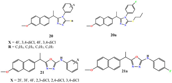 - Han, M.İ.; Tunç, C.Ü.; Atalay, P.; Erdoğan, Ö.; Ünal, G.; Bozkurt, M.; Aydın, Ö.; Çevik, Ö.; Küçükgüzel, Ş.G. Design, synthesis, and in vitro and in vivo anticancer activity studies of new (S)-Naproxen thiosemicarbazide/1,2,4-triazole derivatives†. New J. Chem. 2022, 46, 6046–6059. [Google Scholar] [CrossRef]