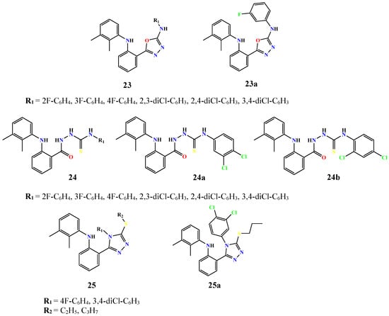 - Sardar, A.; Abid, O.U.; Rehman, W.; Rasheed, L.; Alanazi, M.M.; Daud, S.; Rafiq, M.; Wadood, A.; Shakeel, M. Synthesis and biological evaluation of diclofenac acid derivatives as potential lipoxygenase and α-glucosidase inhibitors. R. Soc. Open Sci. 2024, 11, 240543. [Google Scholar] [CrossRef]